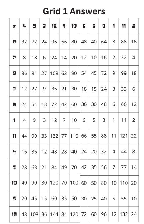 Understanding that guided learning doesn't end at practice, our Times Tables Grids come equipped with comprehensive answer keys. Every grid, every challenge is paired with its corresponding solution, ensuring learners have a reliable reference at their fingertips. This enables immediate feedback, allowing children to cross-check their responses, understand their errors, and reinforce their correct solutions. With all answers provided, students are empowered to navigate their multiplication journey with confidence and clarity.